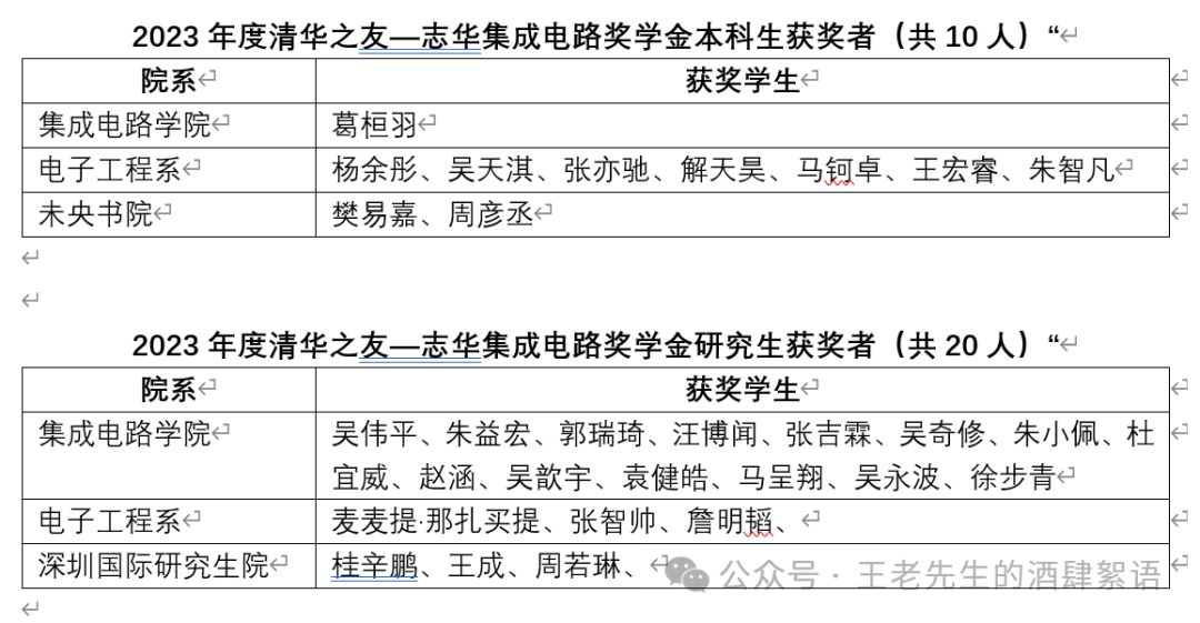 【摘要】清華校友—志華集成電路獎學金,獎金額每人1萬元。去年(2023)年獎勵學生30名。今年(2024)獎勵學生60名。感謝捐贈資金的校友,期望行業內校友企業和非校友企業能繼續接待獲獎學生參觀、訪問、學習;也歡迎校友回學校時,約請這些學術談天說地,指導他們的學業級職業。 1.獎學金 “清華校友—志華集成電路獎學金”是清華大學的校級獎勵。最初由部分清華校友及其所在的企業捐贈1700萬元人民幣成立。2024年又新獲得校友捐資300萬元,獎勵金基金部分總額達到了2000萬元。接受捐