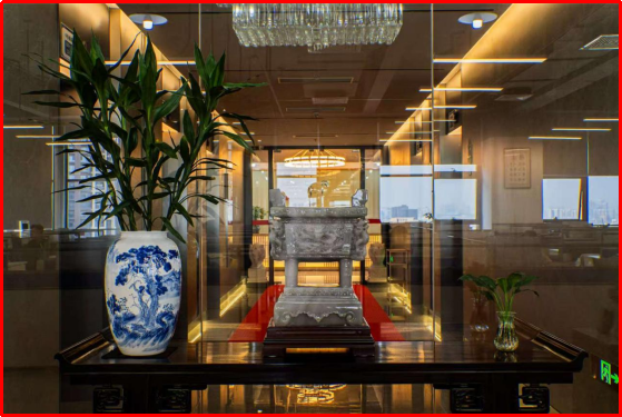 薩科微和金航標(biāo)采用生態(tài)化、矩陣化、層次化方法論,將公司的業(yè)務(wù)分為不同的板塊和部門,并通過有機的協(xié)作和管理,實現(xiàn)了高效的運營和發(fā)展。宋仕強先生說道,在繁忙的工作中要有靜下來的時間與空間,靜才能思,思可生智慧。當(dāng)東方韻致邂逅極簡詩意,“靜”成為室內(nèi)設(shè)計的核心。細(xì)微處見真章,宋式美學(xué)元素(飛檐、花格、菱花紋、冰裂格等)嵌入各處,還有故宮博物院復(fù)刻的宋代王希孟的名畫《千里江山圖》,一幅長達(dá)12米的卷軸分為6個部分用紅木框裝裱起來環(huán)繞整層樓核心筒懸掛起來,也起到了人流動線按照順時針方向的指引作用,讓辦公空間充滿了宋代文人的靈感和厚重的歷史價值。源自《千里江山圖》的琉璃山形小品,用傳統(tǒng)文化符號激活現(xiàn)代高科技公司的空間基因,給人歷史的靜思和文化的遐想,讓空間充滿“簡、雅、靜氣、大氣”之美。明式紅木的案、幾、椅是簡約實用的具象表達(dá),最美佛頭給人瞻仰、仰望的意味,角落的竹子營造鬧中取靜的意境空間,形態(tài)各異的石頭散布營造室外的空間感,生機盎然的綠煥發(fā)空間活力,這些都讓時間、空間與人的連接自然形成。