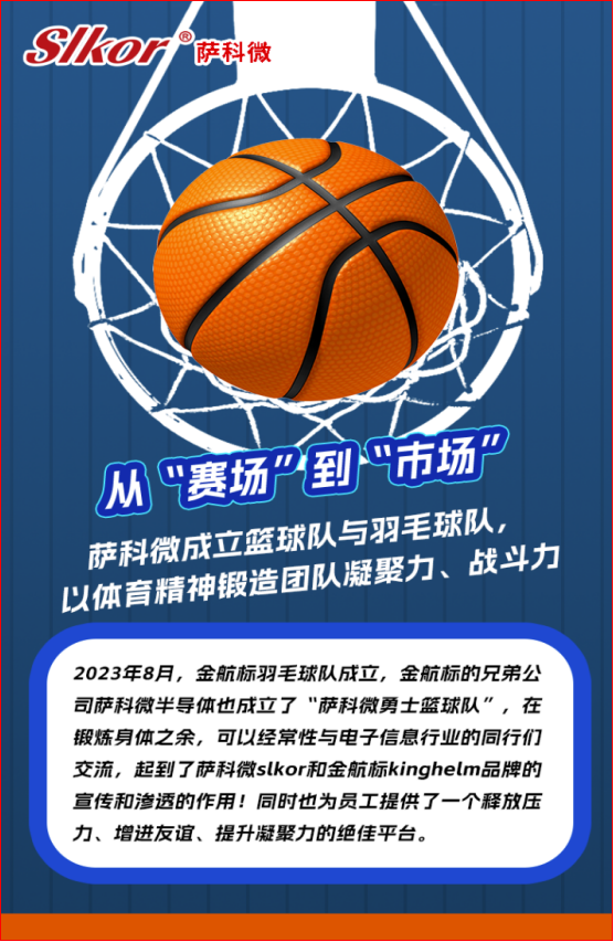 金航標(biāo)/薩科微打造有活力有創(chuàng)造力的團(tuán)隊(duì),除了每周之星評(píng)選活動(dòng),還定期舉辦茶話會(huì),宋仕強(qiáng)先生還帶領(lǐng)四川和重慶籍的同事們參加“川渝同芯會(huì)”的聯(lián)誼活動(dòng),還有每年開春傳統(tǒng)的“家鄉(xiāng)美食節(jié)”。公司還組建了“Slkor薩科微勇士籃球隊(duì)”和“kinghelm金航標(biāo)羽毛球隊(duì)”,組織同事們團(tuán)建打球交流,讓員工們?cè)阱憻捝眢w的同時(shí),增進(jìn)彼此之間的友誼,讓金航標(biāo)/薩科微團(tuán)隊(duì)充滿活力。
