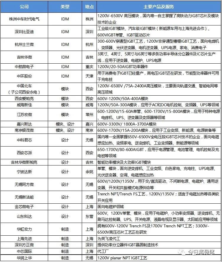 IGBT產(chǎn)業(yè)鏈主要公司及主要產(chǎn)品