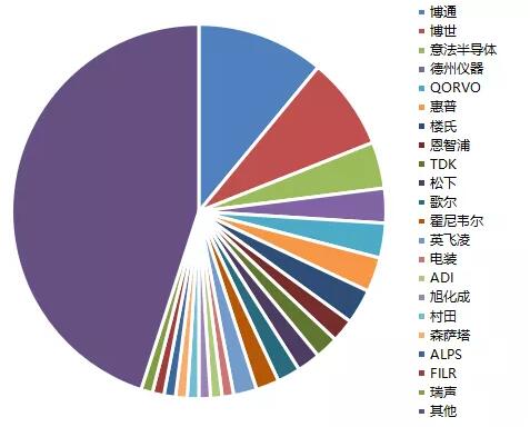 圖21 2019年中國MEMS市場廠商結構
